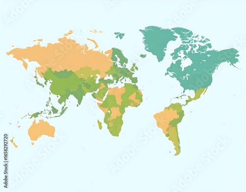 © Emi, Obraz premium World map with shaded regions (1)