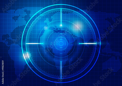 Obraz premium World Map with Technology Blue Background