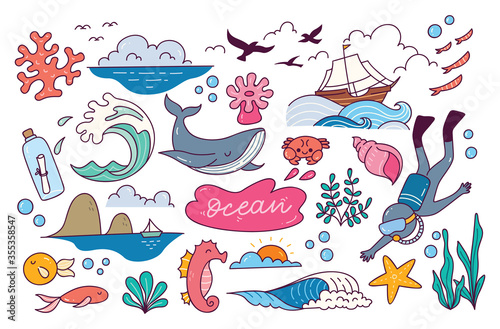 © mhatzapa, Naklejka premium World ocean day doodle element