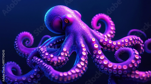 Fototapeta premium World Octopus Day. Octopus in the sea. Cute octopus in an underwater coral...