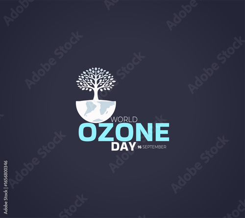 © Jannatul, Fototapeta premium World Ozone Day Creative illustration , 16 September .International Day for the Preservation of the Ozone Layer. Illustration vector graphic of tree half the earth.