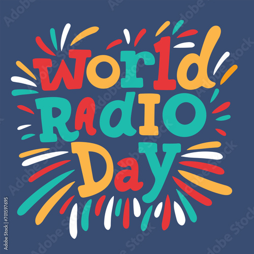 Fototapeta premium World Radio Day text banner. Handwriting text World Radio Day. Hand drawn vector art