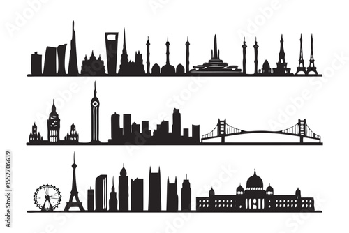 Fototapeta premium World Skyline Silhouette Collection: Capturing the essence of global cities...