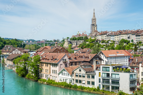 Naklejka premium World treasure city. View of Bern old town over the Aare river - Switzerland.
