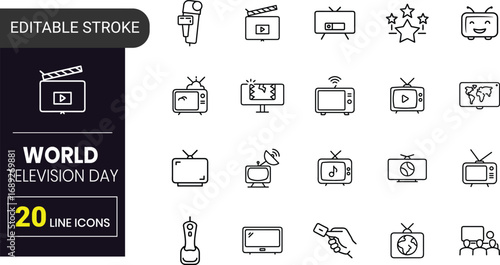 Fototapeta premium World TV Day Outline Vector Icons | Broadcast, Screen, Remote, Antenna,...