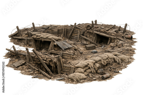 © ArtBox, Fototapeta premium World war i battlefield trench with bunkers and sandbags