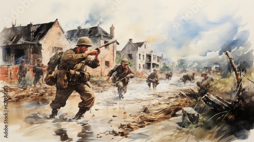 © W&S Stock, Fototapeta premium World war II battle scene illustration. AI Generative Art.