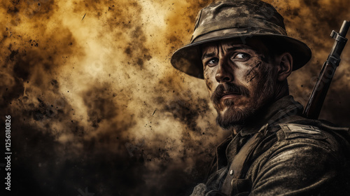 © ukasz, Fototapeta premium world war soldier with pride Generative AI