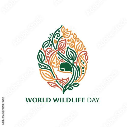 Obraz premium World Wildlife Day Concept Lion Face in Leaf Shape Line Art
