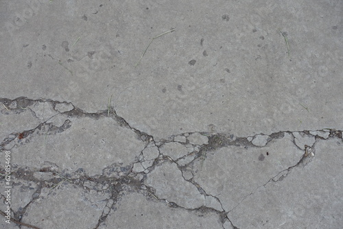 Fototapeta premium Worn dry light grey concrete slab with numerous cracks