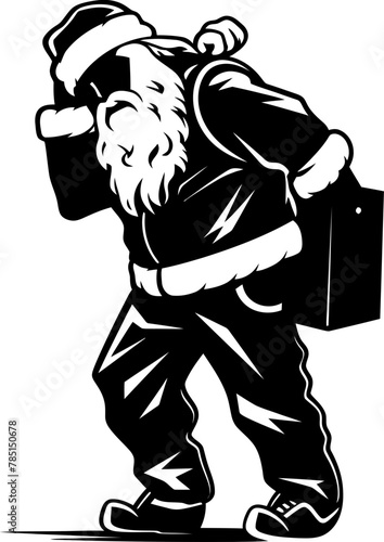 © BABBAN, Fototapeta premium Worn Out Kris Kringle Shoulder Strain Emblem Dreary Santa Burdened Bag Logo