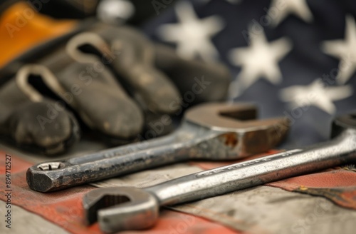 Fototapeta premium Worn Tools on American Flag