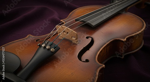 © erinWorks, Fototapeta premium Worn Violin on Velvet