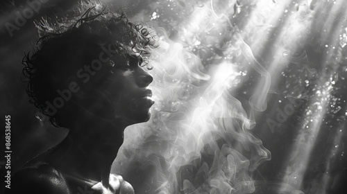 © Graphics.Parasite, Fototapeta premium Worried Man in Black and White Photography