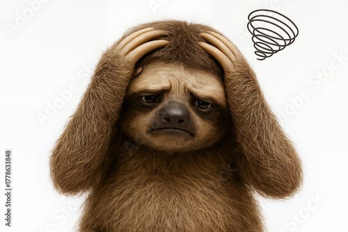 © mochimugi, Naklejka premium Worried Scene of a Sloth Holding Its Head
