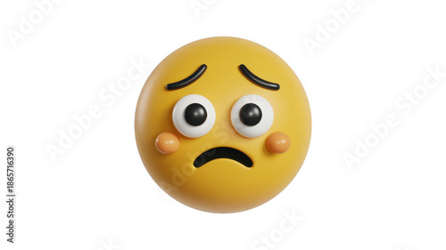 Fototapeta premium Worried yellow emoji face with frowning expression close-up isolated on a...