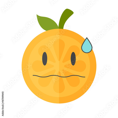Obraz premium Worry emoji. Worrying orange fruit emoji with drop of sweat. Vector flat design emoticon icon isolated on white background.