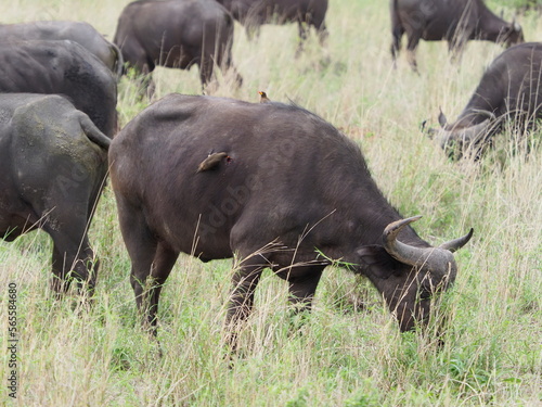 © Jennifer de Montfort, Obraz premium wounded buffalo with oxpecker