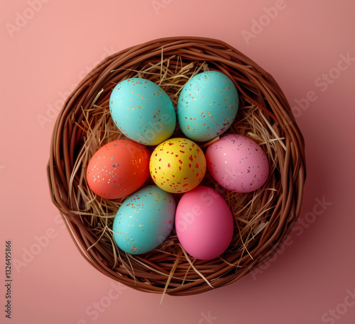 Naklejka premium Woven Basket Easter Eggs - Minimalist Geometric Patterns with Metallic...