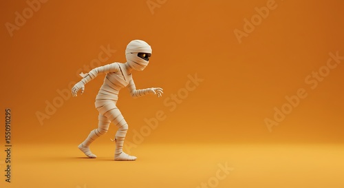 © GUST, Fototapeta premium Wrapped cartoon figure on orange
