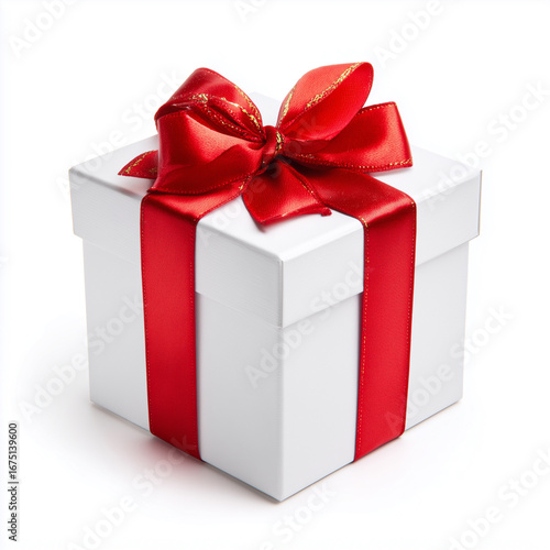 © Namhom, Fototapeta premium Wrapped Christmas gift box with red ribbon bow