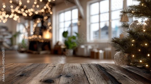 © lililia, Obraz premium Wrapped gift boxes of different sizes sit near a cozy fireplace with a nostalgic holiday atmosphere