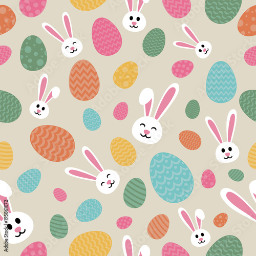 Obraz premium Wrapping paper with bunnies and eggs - Easter design. Vector.