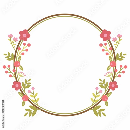 © NurulDewi, Fototapeta premium Wreath frame with pink flowers