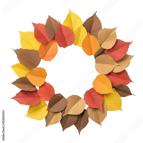 © Mykmicky, Obraz premium Wreath of autumn flowers and leaves, isolated on transparent background