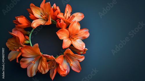 © Akash Tholiya, Obraz premium Wreath of orange flowers on black background copy space