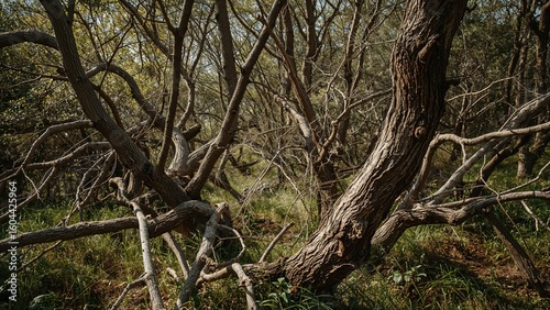© The 2R Artificiality, Fototapeta premium Wrecked Tree Trunks in a Forest Setting