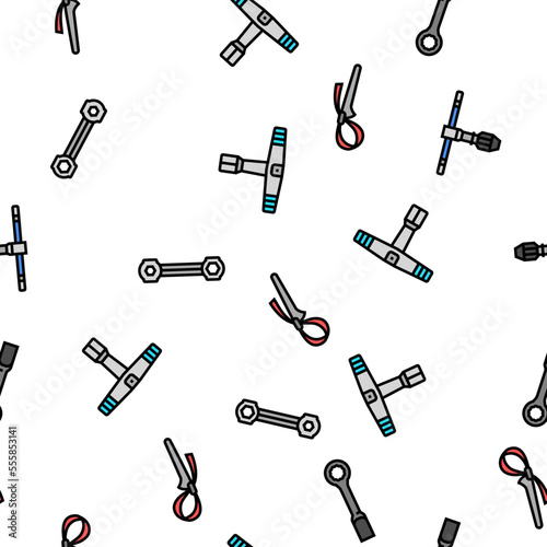Obraz premium wrench tool spanner repair vector seamless pattern thin line illustration