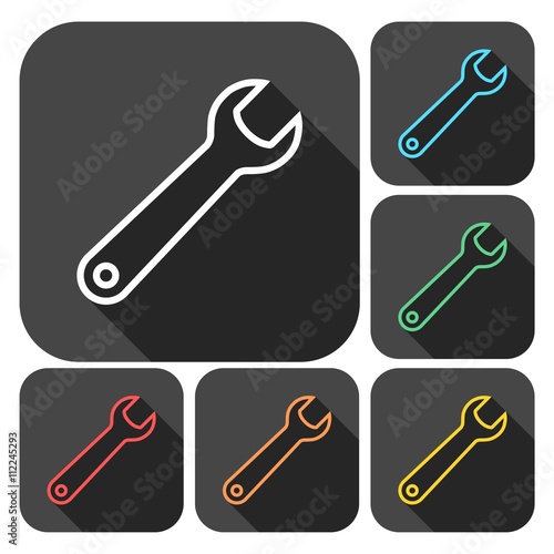 © sljubisa, Fototapeta premium Wrench vector icons set with long shadow