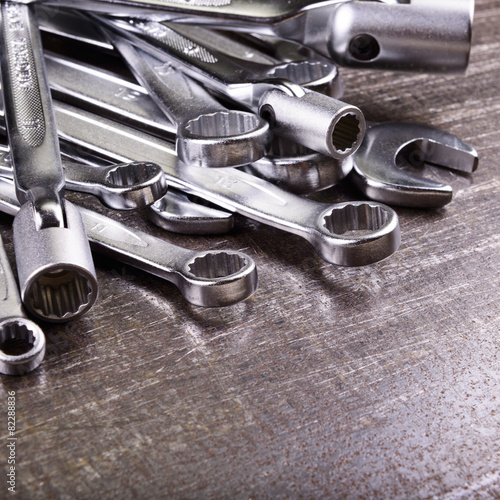 Fototapeta premium wrenches on a metal background
