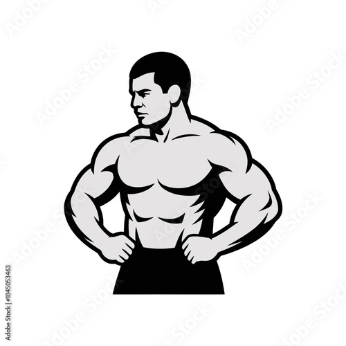 Fototapeta premium Wrestler vector suitable for sports designs. Muscular man in wrestling stance showing powerful physique. Ideal for athletic promotions and merchandise.