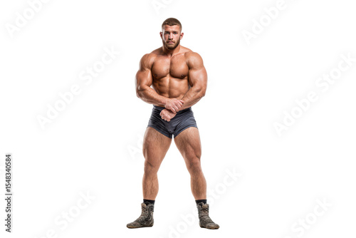 © Bojan, Fototapeta premium Wrestling Player Poses Confidently in Athletic Stance on a White Background
