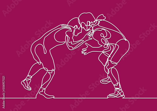 © nikvector, Obraz premium Wrestling vector-continuous line drawing