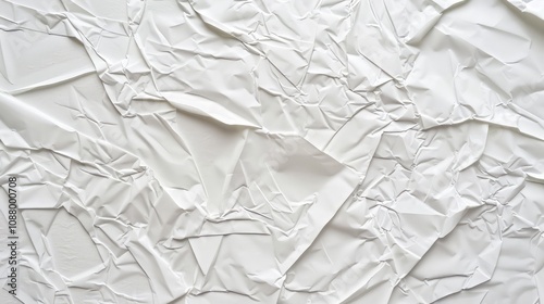 © Ulee, Fototapeta premium Wrinkled and glued white paper poster texture background image.