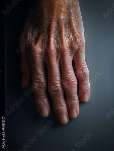 © Sumonrat, Fototapeta premium Wrinkles on the back of an elderly person's hand, empty space
