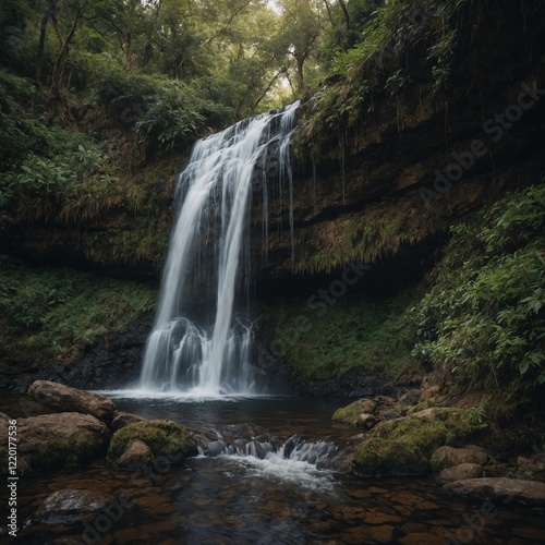 © Eman, Fototapeta premium Write a short story about someone who stumbles upon a hidden waterfall after a long journey.