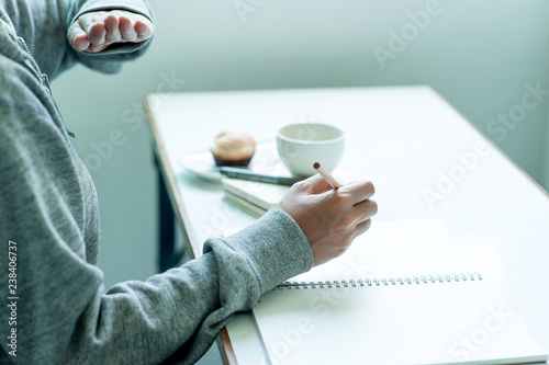 © FOTO SALE, Fototapeta premium Writing on paper at work on the table in the morning, business ideas. There is space for copying.