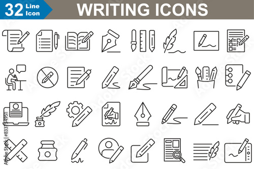 © Kashif, Naklejka premium Writing outline Icons set vector illustrator.