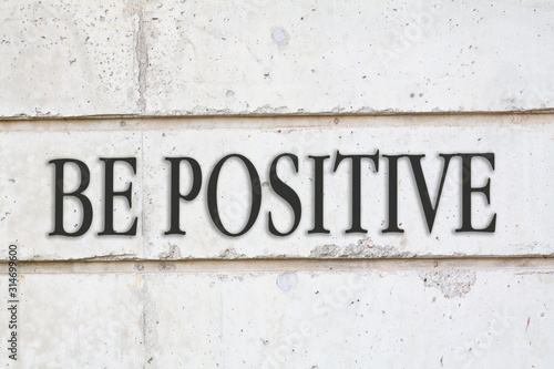 Fototapeta premium written BE POSITIVE words on concrete wall background