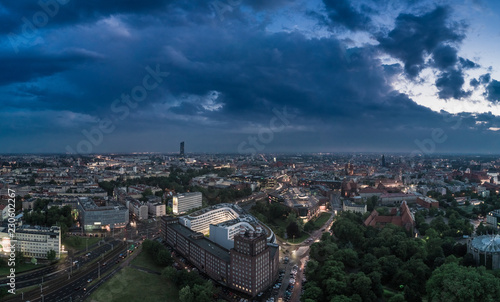© Artur Kowalczyk, Fototapeta premium Wrocław panorama before the storm aerial view