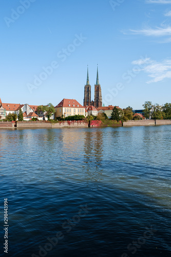 Naklejka premium Wroclaw, Poland, Cathedral of St. John the Baptist, view from the other side of the river