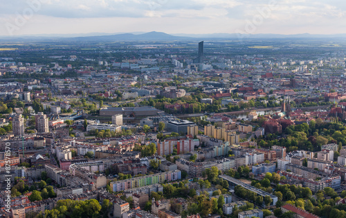 Fototapeta premium Wroclaw, Poland - May 04, 2015: Aerial view of Wroclaw city