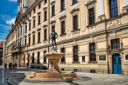 Obraz premium Wroclaw, Universität mit Fechterbrunnen