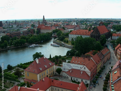 Obraz premium Wrocław, widok na Ostrów Tumski z wieży Katedry w maju