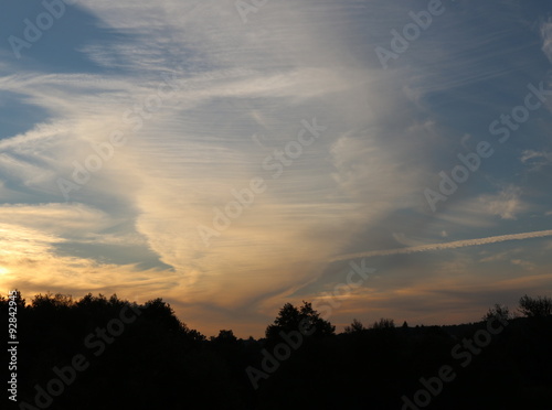 © kotirbis, Fototapeta premium Wschód słońca, chmury podświetlone promieniami słońca.