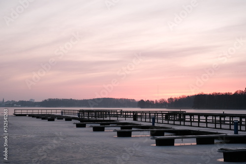 Fototapeta premium Wschód słońca na molo w Olsztynie